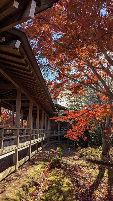 表側はすでに時間的に日が届かないところが多く、モミジ自体も盛期を過ぎていたとはいえ、閑静な境内の佇まいは十分に目と心の保養になるものであった。
