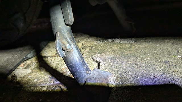 この間から発進時に時々カチンという金属音がするので何かと思っていたが、音の出所はセンタースタンドのスプリングフックだった