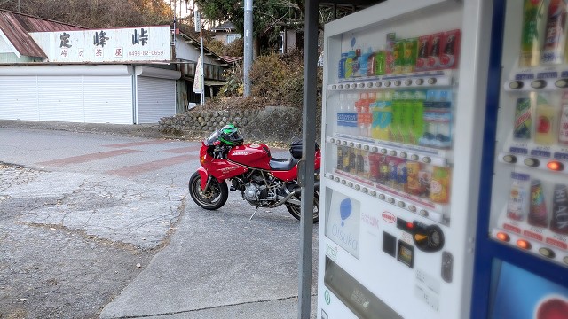 当然ながら峠の茶屋はもう閉まっているが自販機にてコーヒー休憩 さてどちらに下りるか思案